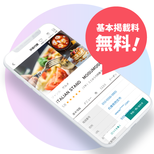 店舗の掲載に関しては無料からはじめる事ができます。有料のプランで最大5,500円のプランまでございます。しかもリリース後、1万ダウンロードまでは料金が発生しませんので、その間、ご使用方法を覚えていただいたり、実際に試していただたりする期間と考えております。