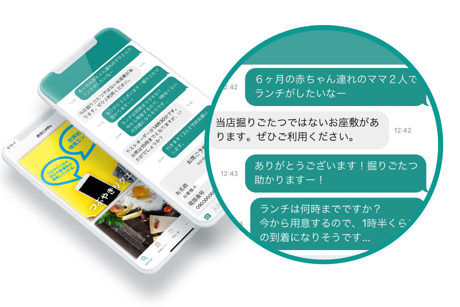 ユーザー(羽曳野 藤井寺 の皆さん)にダイレクトアプローチできるプッシュ通知機能やお客様とチャットができる機能など多彩なアプローチが可能!