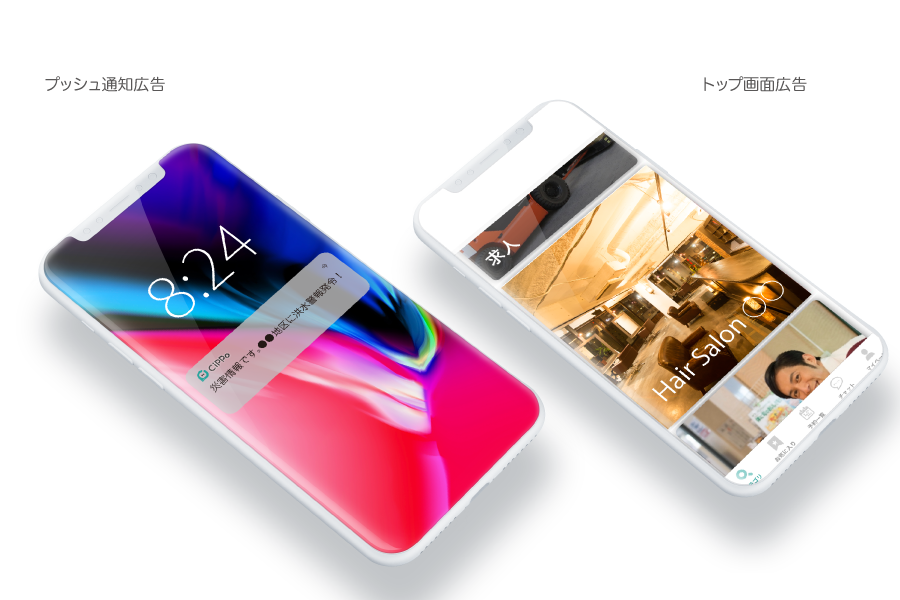 機能としては、チラシを出す事ができたり、求人を出す事ができたり、予約していただいたお客さまにプッシュ通知を送る事もできます。 また、ユーザー側には、不審者情報や災害情報が簡単に閲覧できたりと、広告をだされる方とアプリを使う方両方にとって有益な機能が満載です。もちろん、これ以外にもまだまだ、たくさんの機能があるので、一度お話に伺いたいと考えています。